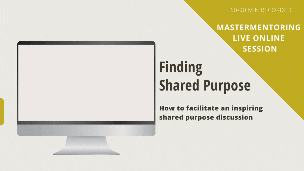 ÂŤFinding Shared PurposeÂť is a ready-to-use workshop kit and a recorded 60-90 minute 'how to do it yourself' Mastermentoring live session on how to facilitate an inspiring a 3-hour workshop session about formulating effectively a shared purpose statement in co-creation.