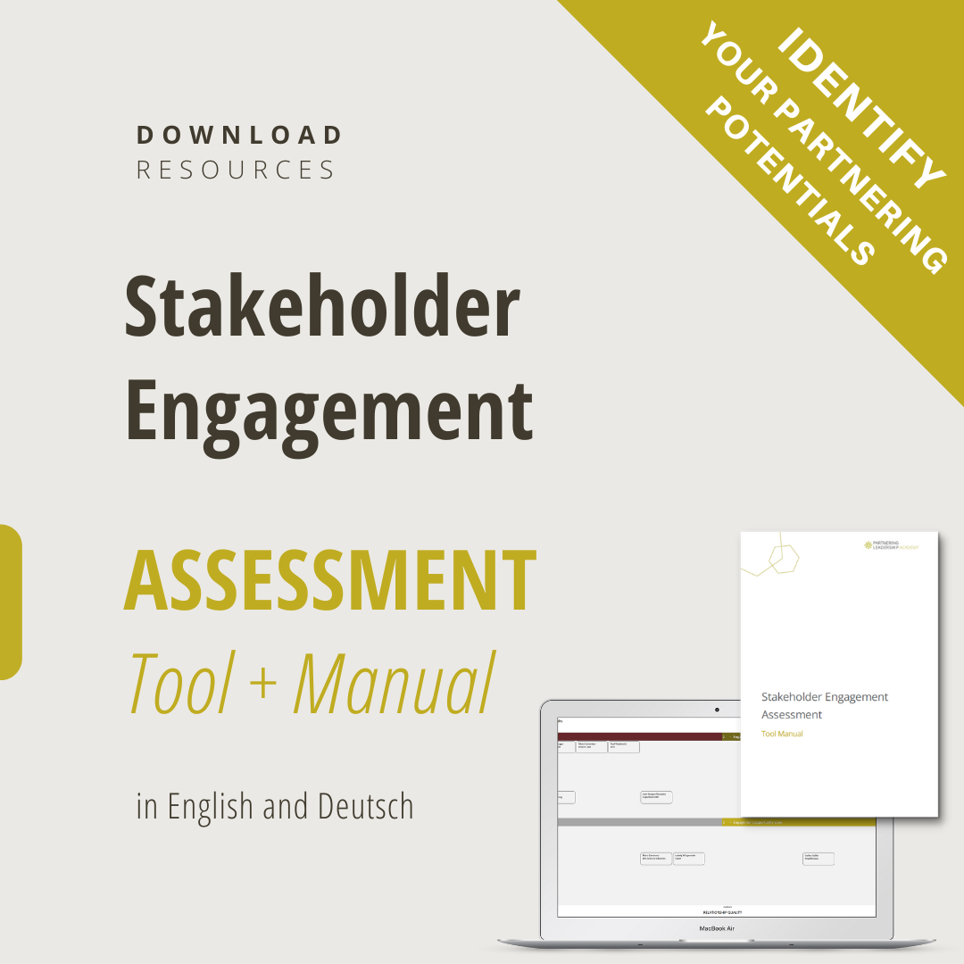 Download the excel tool: save a copy on your drive and chose your preferred language (English or Deutsch). You can immediately enter your connections. You can insert and assess up to 20 stakeholders with name and function along 5 different stakeholder categories.
