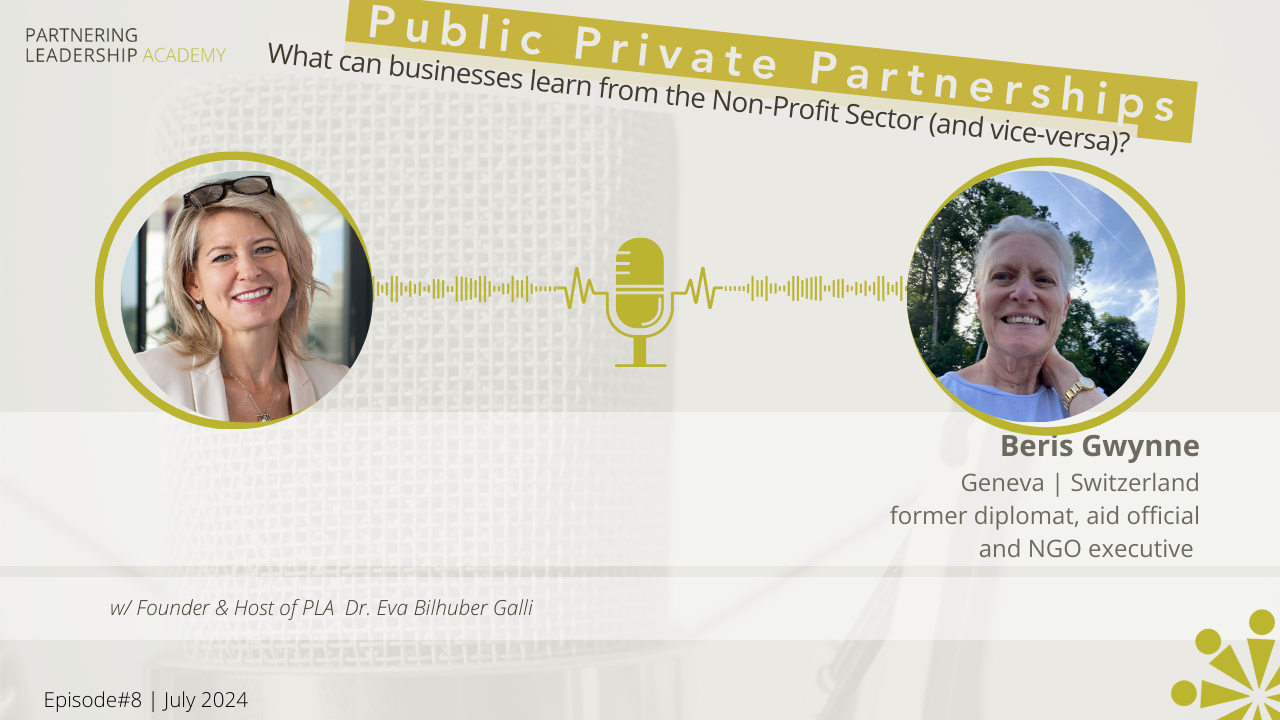 Tune into this PLA podcast episode with Beris Gwynne, former diplomat, aid official, NGO executive, and Founder of Incitāre International, based in Geneva, Switzerland. She shares insights from her 35-year career on the dynamic relationship between the private and non-profit/public sectors, which she sees as critical for achieving Sustainable Development and Climate Goals.